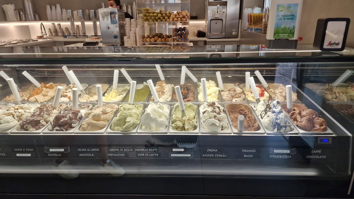 Friendly place even with limited English. Popular with the locals it seems. Decent coffee and pastries for breakfast or pieces of pizza later on if you are not looking for ice cream. Seems quite a meeting point and gets customers throughout the day.
